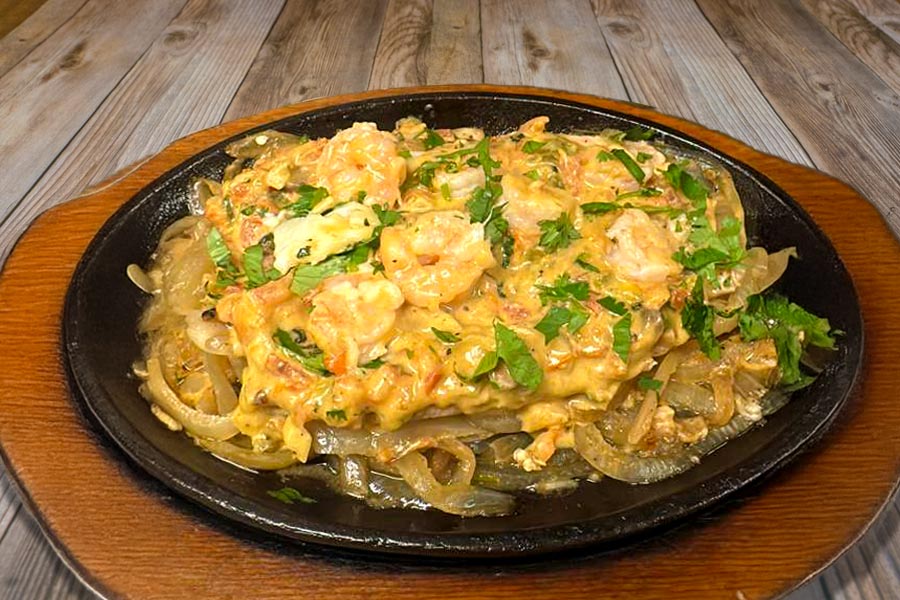 Chicken & Seafood22.99Grilled Chicken Breast topped with sautéed Shrimp, Crab Meat, Melted Jack Cheese, Tomato, Onions, Cilantro, Mushrooms and Jalapeños. -