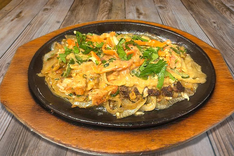 Steak Caliente$21.99Whole piece of marinated Fajita Steak covered with spicy sauce, slice of fresh Jalapeño, Cilantro and Melted Cheese. -