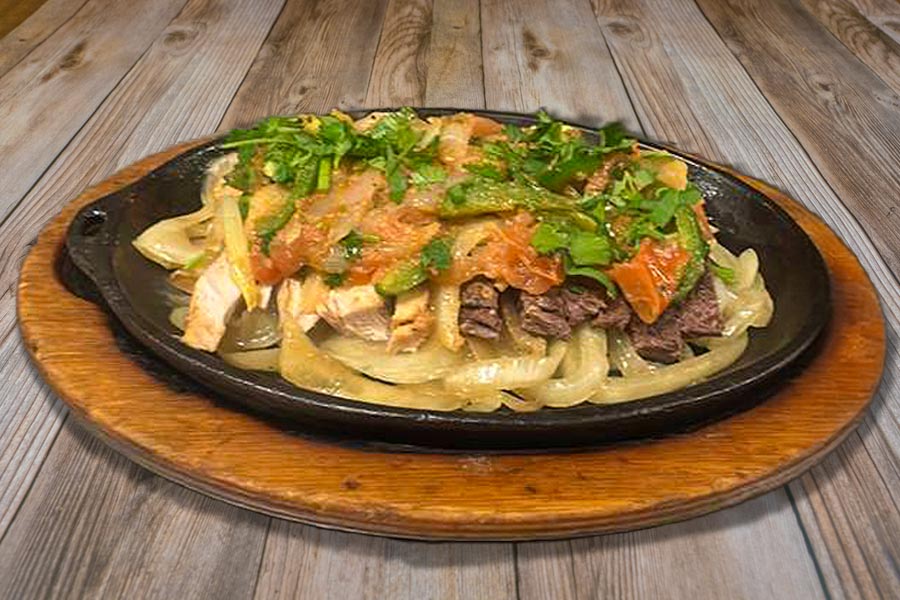 Fajita 3 AmigosFajitas of your choice, Beef or Chicken, covered with sautéed Onions, Cilantro, Tomato, Jalapeños and Mushrooms. Beef, Chicken or Combo.