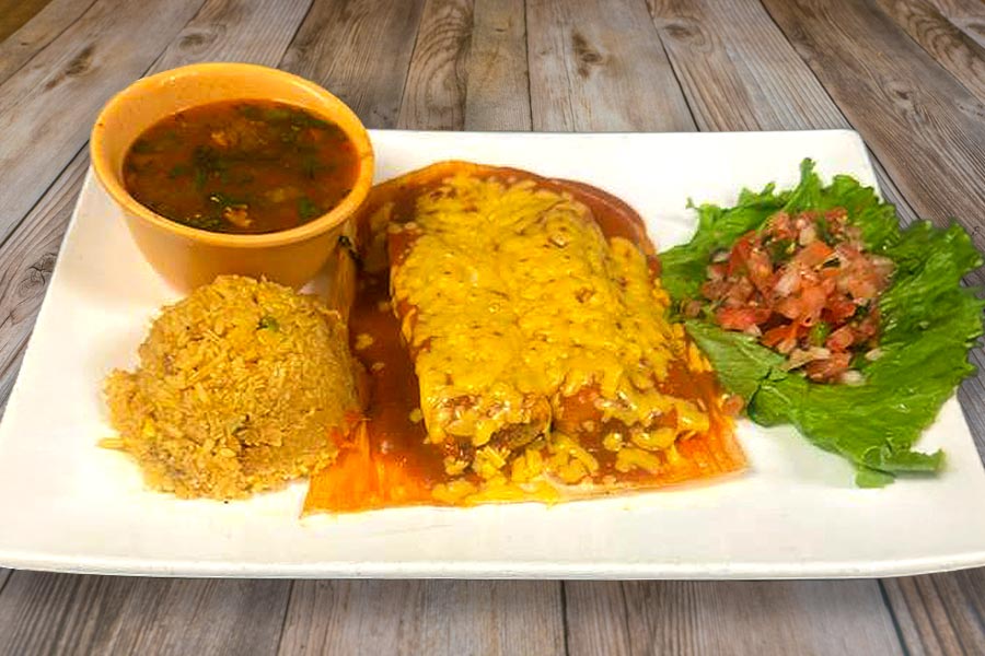 Tamales13.99Mexican Corn Dough with Pork meat, topped with gravy, Cheese.